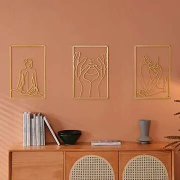 Show moreIntroducing the stunning DeaTee 3 Packs Gold Wall Decor, designed to elevate your living space with its minimalist charm. Crafted from 0.12'' thicker real metal, these modern abstract sculptures depict a captivating single-line female body design, perfect for adding a touch of elegance and sophistication to your bedroom or any room in your home. Each piece is not only a decoration but also a statement piece that reflects your unique style. With its golden finish, it effortlessly complements various interior themes, making it a versatile choice for enhancing your decor.