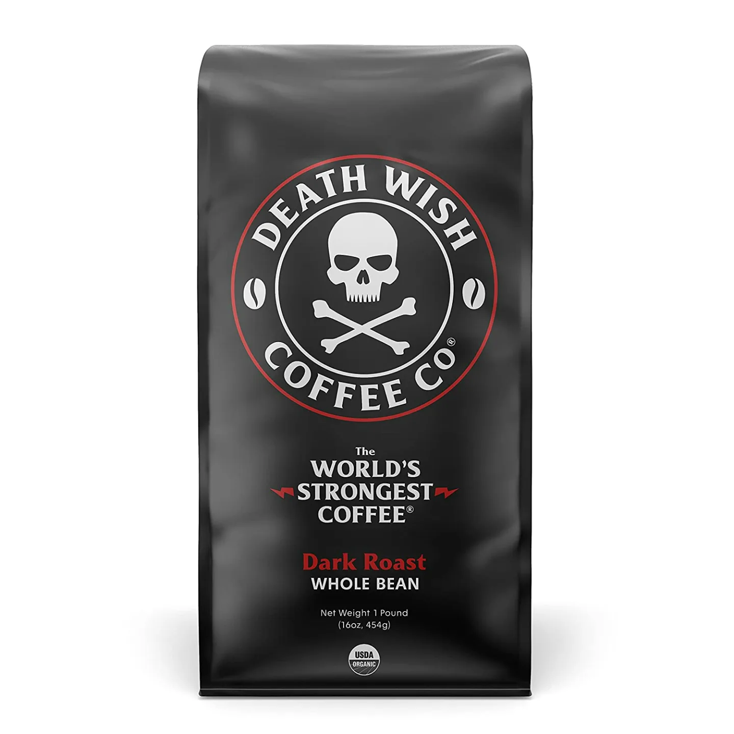 DEATH WISH COFFEE Dark Roast Whole Beans - Extra Caffeine 16 oz