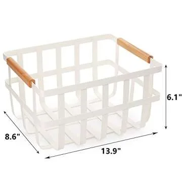 Show more This versatile and stylish storage solution is perfect for any home! Crafted with durable metal wire and featuring a sleek wood handle, it guarantees long-lasting use and quality. With its multipurpose functionality, this rectangular basket can effortlessly organize your pantry, kitchen, or any room in need of tidying up. Whether you're looking to store fruits, coffee, spices, pasta, or even toys, this basket has got you covered!