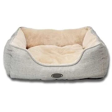 DEBANG HOME Dog Bed,Dog Beds for Medium Dogs,Cat Bed,Calming Dog Bed,Anxiety Comfy Durable Pet Beds with Reversible&Washable Cushion,Rectangle Dog Bed in Grey Color (Small, Beige)