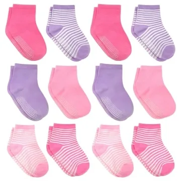 Show more Introducing the Debra Weitzner 12 Pairs Non-Slip Toddler Socks – the ultimate solution for active little ones on the move! Crafted with a unique non-slip grip pattern that is designed to support your child’s growing feet, these toddler socks feature eco-friendly rubbers that provide superior traction on slippery surfaces, making them ideal for both indoor and outdoor play. Each pair is designed with soft elastic fibers, ensuring gentle comfort while allowing for stretch to accommodate your toddler’s growing feet with ease. These socks also come in a delightful range of colors and patterns, making them a vibrant and fun accessory for your child’s wardrobe.