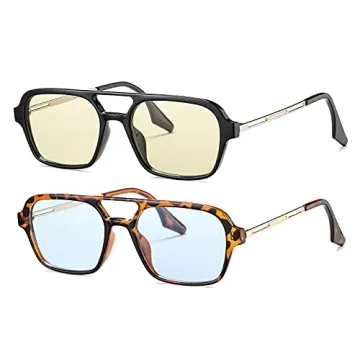 DeBuff Vintage 70s Flat Aviator Sunglasses for Women Men, Retro Square Glasses UV400 Protection Shades