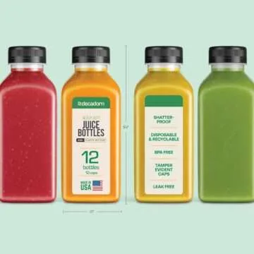 DECADORN 8oz 12pcs Plastic Bottles With Caps - Juicing Bottles For Juicing - MADE IN USA Clear Mini Bottle With Lids - Drink Container - Shatterproof, BPA-Free, Leak proof, Disposable & Recyclable