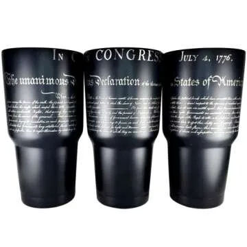 Unlike standard travel mugs that often fail to provide adequate insulation or durability, the Declaration of Independence Tumbler excels with its top-tier materials and expert design. Many competitors rely on thin walls that compromise temperature retention; however, our double-wall vacuum insulation ensures your beverages stay just right. Additionally, with a striking engraving that outlasts fading and wear, this tumbler offers longevity not commonly found in printed options. Choose our tumbler for a bold statement that endures and supports American pride.