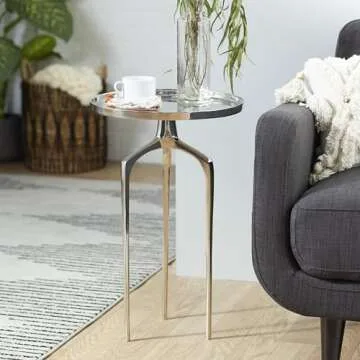 Deco 79 Aluminum Metal Side End Accent Table Slim Tray Top End Table with Tripod Legs, Side Table 16" x 16" x 25", Silver