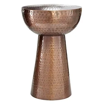 The Deco 79 Metal Accent End Table is crafted from metal, featuring a hammered design with a bronze finish.