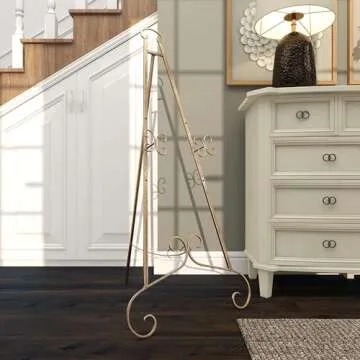 When compared to other easels on the market, the Deco 79 Metal Scroll Easel stands out due to its superior construction and elegant design. Many competitors use plastic or less durable materials that lack the aesthetic appeal of our gold metal exterior. Additionally, the scroll design and robust iron frame ensure stability that less expensive options fail to deliver. Customers repeatedly express appreciation for how seamlessly this easel fits into their traditional homes, making it a more desirable choice for discerning buyers than rival products.