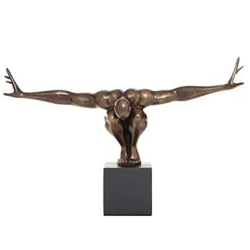 Show more This traditional decorative statue embodies the essence of timeless sophistication, expertly blending rich old-world textures with warm hues to create an exquisite representation of understated luxury. Crafted with high-quality polystone, this bronze home decor figurine showcases a striking metallic bronze finish that glimmers under various lighting conditions. The highlight of this sculpture is the intricately detailed diver accent, featuring a sitting figurine with arms beautifully spread to the sides, which exudes a sense of freedom and elegance.