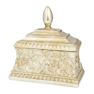 Show moreTransform your living space with the luxurious Deco 79 Polystone Floral Decorative Jar! This stunning decorative container is not only functional but also a true masterpiece that combines elegance with a rich old-world charm. Crafted from high-quality solid polystone, this decorative jar boasts a unique blend of durability and artistry, designed to stand the test of time. Its exquisite gold satin finish emphasizes its vibrant charm, making it an ideal accent piece for any home. With its distressed white gold finish and rectangle design, this jar complements various interior styles, whether you prefer classic, modern, or eclectic aesthetics.