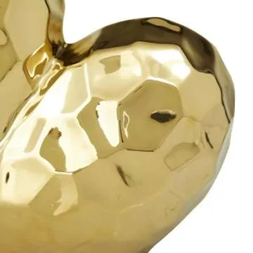 Transform your living space with the captivating Deco 79 Porcelain Ceramic Heart Decorative Sculpture. This exquisite abstract sculpture beautifully embodies the essence of glamour and elegance, making it the perfect accent piece for any room. Crafted with meticulous attention to detail, the sculpture features a visually striking slanted heart shape that is inspired by origami artistry. Made of premium-grade porcelain, this decorative sculpture not only offers a luxurious glossy gold finish...