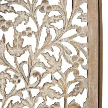 Deco 79 Wooden Floral Handmade Home Wall Decor Arched Wall Sculpture with Intricate Carvings, Set of 2 Wall Art 15" W, 36" H, Brown