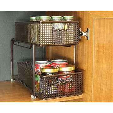 Show moreIntroducing the Deco Brothers 2 Tier Bathroom Storage Organizer with Pull-Out Drawer, a sophisticated and functional addition to any home. This elegantly designed storage solution is crafted from high-quality materials, ensuring both durability and style. Featuring a beautiful bronze finish, this organizer seamlessly blends with your bathroom decor while providing ample space for your essentials. The 2-tier design allows for efficient storage, making it perfect for decluttering cabinets or under sinks. Each drawer glides out smoothly, granting you quick access to your favorite products, while the rubber feet prevent slipping and protect your surfaces from scratches.