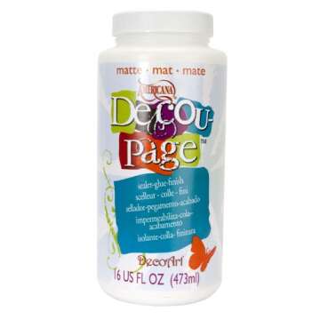 Show moreDiscover the magic of creativity with the DecoArt 16-Ounce Decoupage Glue, expertly designed for artists, crafters, and DIY enthusiasts alike. This versatile glue acts as a glue, sealer, and finish, making it the ultimate all-in-one solution for all your decoupage projects. Its non-toxic formula ensures that you can create worry-free, allowing you to express your creativity without any harmful effects. The glue dries clear, giving your projects a seamless and professional finish that is sure to impress. Whether you are embellishing furniture, creating unique art pieces, or personalizing home decor, this durable and easy-to-use glue elevates your crafting experience to new heights.