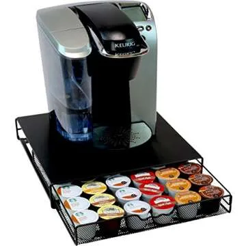 The holder is crafted to fit perfectly under most Keurig coffee makers, preserving precious counter space while providing a stylish and functional storage solution. The non-slip feet feature ensures that the drawer stays in place, eliminating any risks of sliding, even on sleek surfaces. Available in a chic black finish, it not only offers practicality but also enhances the aesthetics of your kitchen decor.