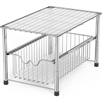 DecoBros Stackable Under Sink Cabinet Sliding Basket Organizer in Chrome
