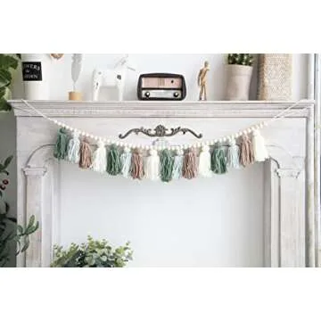 Show more Transform your space with the enchanting Decocove Tassel Garland, a stunning addition designed to elevate the ambiance of any room. This delightful garland is crafted with pastel boho colors that create an elegant and cozy atmosphere, perfect for both vibrant and soothing decors. Each piece is meticulously handcrafted from natural cotton and wood beads, allowing you to infuse a touch of elegance and earthy charm into your home decor.