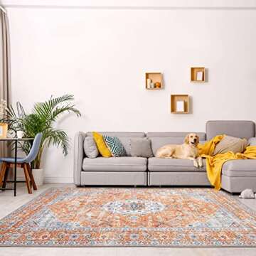 DECOMALL Kalina Washable Area Rugs 8x10ft, Vintage Foldable Carpet in Orange