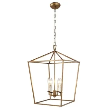 Show moreTransform your space into a masterpiece with the exquisite DecoMust Openwork Lantern Pendant chandelier. This stunning light fixture features an impressive size of 17 inches wide by 25 inches high, making it a perfect focal point for entryways, kitchens, and dining areas. With its enchanting antique gold finish, this piece adds a touch of elegance and vintage charm to any decor. Designed for the discerning homeowner, it is compatible with four E12 bulbs (bulbs not included), giving you the flexibility to customize your lighting for any occasion.