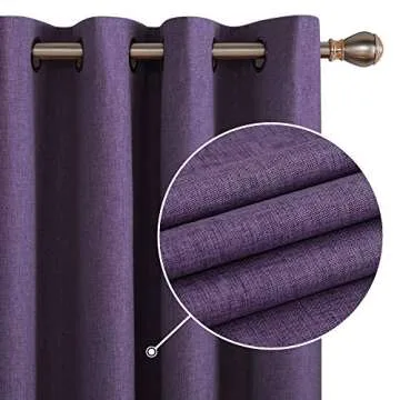 Deconovo Linen 100% Blackout Grommet Curtains for Bedroom and Living Room,Purple Grape,52x63 inches,2 Panels