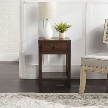 Show moreIntroducing the Decor Therapy Hadley 23" Side Table with Storage Drawer, a stunning blend of functionality and style that effortlessly complements any room decor. Crafted from durable engineered wood featuring a chic blondewood finish, this accent table embodies elegance while ensuring longevity. The rich wood grain not only adds a touch of sophistication, but also makes it a standout piece in your living space. Equipped with a spacious drawer, this table allows you to keep your essentials organized and out of sight—perfect for remote controls, coasters, or your favorite reads. The sleek brass hardware enhances its modern yet timeless appeal, making it a worthy addition to your home.