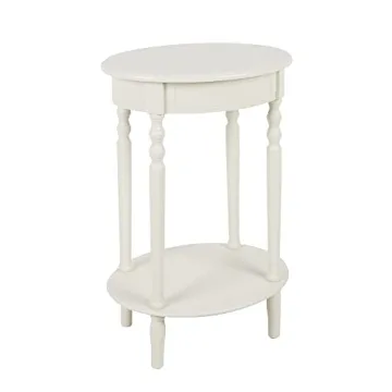Show moreIntroducing the Decor Therapy Simplify Oval Wood Shelf Accent Table – a stunning blend of functionality and style that complements any modern home. Standing at a height of 27 inches, with dimensions of 19.5 inches in width and 15.5 inches in depth, this antique white oval side table is crafted from a durable mix of oak and MDF, ensuring both sturdiness and timeless appeal. Its elegant oval shape not only enhances the aesthetic but also optimizes usage in compact spaces, making it a perfect addition to your living room, bedroom, or hallway.