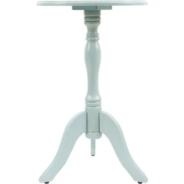 Show more Introducing the Decor Therapy Simplify Round Pedestal Accent Side Table in a delightful Antique Iced Blue finish. This beautiful accent table beautifully marries timeless elegance with modern functionality, making it an ideal choice for those who value both aesthetics and practicality. Designed to seamlessly fit into traditional spaces, this compact piece offers a chic solution for maximizing room efficiency while enhancing your decor. Whether you're looking to spruce up your living room or bedroom, this table serves as a perfect accent that complements various styles and settings.