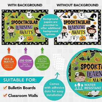 Decorably 76 Pcs Cutouts Halloween Bulletin Board Decorations Set with Borders, Halloween Decor for Classroom - School, Homeschool