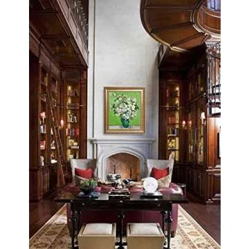 DECORARTS - Pink Roses in a Vase - Vincent Van Gogh. Giclee Print on Canvas with matching Golden-relief Framed Wall Art. Picture Size: 24x20 in, Framed Size: 30x26 in