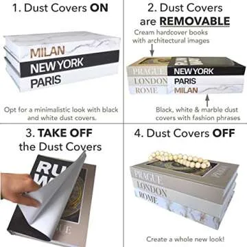- Removable Dust Covers: Achieve various looks with black and white dust jackets featuring designs from New York, Paris, and Milan, allowing you to customize their appearance effortlessly.