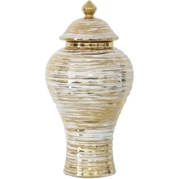 Show moreIntroducing our stunning Decorative Ceramic Ginger Jar with Lid—a perfect blend of elegance and functionality for your home. This exquisite piece stands at approximately 10 inches tall and 6 inches wide, making it an ideal accent for any room. Crafted from high-quality ceramic, its modern design features unique irregular circle shapes complemented by striking gold accents. This ginger jar is not just a decorative item; it also serves as a chic storage solution, ideal for showcasing your favorite potpourri, small personal items, or even fresh and faux floral arrangements.