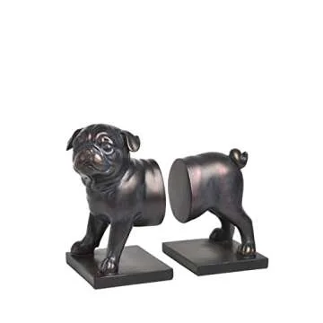 Decorative Figurine Pug Dog Bookends - Decorative Book Stoppers for Heavy Books Movies Magazines Video Games Accessory 2Pcs 9.3 * 5.1 * 8 Inch Newman House Studio