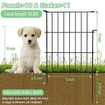 Show more Introducing the Decorative Garden Fence 10 Pack – the ultimate solution for your garden protection needs! Designed with both functionality and aesthetics in mind, this fencing system is perfect for any garden or patio. No longer will you struggle with cumbersome materials; our fence is easy to install, sturdy, and rustproof, ensuring your space looks attractive while keeping your pets and unwanted animals safely contained. Each individual panel measures 17 inches in height and 13 inches in width, providing a total length of 10.8 feet when connected. The innovative adjustable stakes allow you to anchor the fence securely in various ground conditions, making it the go-to choice for all gardening enthusiasts.<\/p>