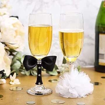 Why You Will Love This Product?Imagine clinking these gorgeous flutes together as you share your first toast as a couple, or raising them during an anniversary dinner surrounded by loved ones. These Decorative Glass Champagne Flutes encapsulate the spirit of joy, celebration, and togetherness. Beyond functionality, they serve as a lasting reminder of your most cherished moments—all while adding a touch of grace and sophistication to your ceremonies. You will appreciate how they enhance the ambiance of any gathering with elegance and charm, creating lasting memories for years to come.