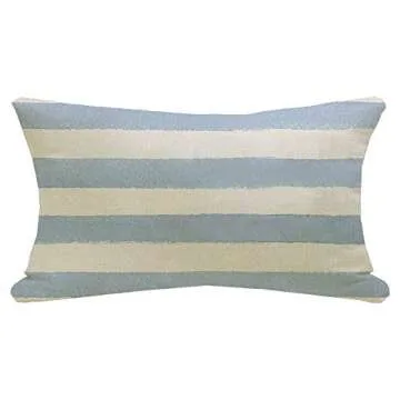 Decorative Throw Pillow Cover with Blue Stripes and White Texture, 12x20 Inch Classic Design