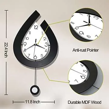 Show moreIntroducing the SHUNZY Decorative Silent Wall Clock, a true masterpiece that seamlessly combines form and function to elevate your home decor. With dimensions of 22.4 inches in height and 11.8 inches in width, this elegant wall clock stands out in any room while also providing accurate timekeeping. The SHUNZY clock is designed to enhance a variety of spaces, from living rooms and bedrooms to kitchens and offices. Its chic, modern aesthetics coupled with a unique pendulum motion creates a soothing atmosphere, making it an ideal addition to your indoor environment.