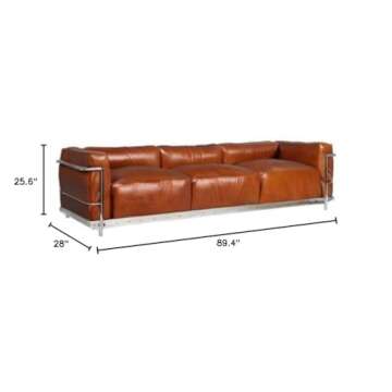 Decorific NYC Mid-Century Minimalist Cube Furniture (Sofa, Antique Brown Leather, Seats Three)