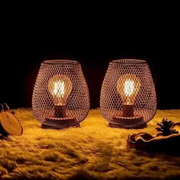 DECORKEY Set of 2 Battery Operated LED Table Lanterns - Vintage Metal Charm for Indoor and Outdoor Decor