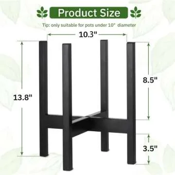 Show moreIntroducing the DECORLIFE 10-Inch Black Plant Stand, an exquisite blend of functionality and modern design that will elevate your indoor garden. This mid-century modern planter stand is crafted to fit seamlessly into any home decor while offering sturdy support for your favorite plants. With assembled dimensions of 10.3 inches in diameter and 13.8 inches in height, it comfortably accommodates almost any plant pot within 12 inches in diameter. Made from thick metal material, this stand is durable and can effortlessly hold up to 223 lbs without wobbling, ensuring your plants are both displayed beautifully and securely. The sleek black powder coating not only enhances its aesthetics but also provides water and rust resistance, promising you years of reliable usage in any environment.