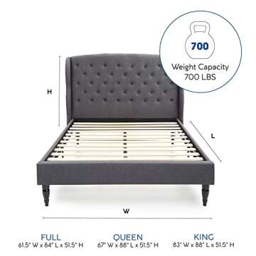 DeCoro Coventry Upholstered Platform Bed | Headboard and Metal Frame with Wood Slat Support | Grey, King Size
