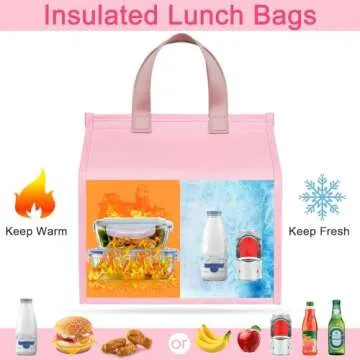 Deegotech Lunch Bag Women, 2Pack Large Insulated Lunch Box, Reusable Cooler Bags for Adult Men, Leakproof Lunch Tote Bags for Work Office Camping Picnic [Pink+Black]
