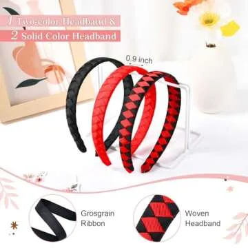 DEEKA 3 PCS Woven Headband Uniform Headband Hair Accessories Grosgrain Ribbon Weaved Hair Band for Women Girls Teens Football Softball Cheer Sports (Black&Red)