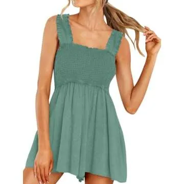 Show more Get ready to turn heads this summer with the DEEP SELF Green Summer Rompers for Women. This stunning sleeveless square neck smocked loose shorts jumpsuit is designed to be your go-to outfit for every warm weather occasion. Made from a blend of soft, lightweight, and breathable materials, this romper offers unparalleled comfort, making it perfect for all-day wear. Whether you’re lounging at home, enjoying a sunny day at the beach, or heading out for a night on the town, this romper is the ultimate blend of style and relaxation.