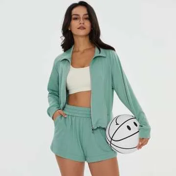 DEEP SELF Women's 2 Piece Comfy Outfits - Oversized Zip Up Sweatshirt & Shorts