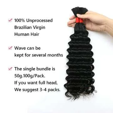 Deep Wave Bulk Human Hair for Braiding No Weft 100 g (1 Pack-2 Bundles) 100% Unprocessed Brazilian Virgin Human Hair Extensions Human Braiding Hair For BOHO Braids Curly Deep Bulk 22 inch Jet Black #1