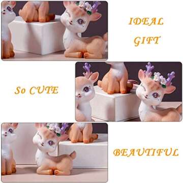 Meet our delightful Deer Figurines Cake Topper, a charming addition to any home or event decor. Crafted from high-quality resin, each fawn is meticulously hand-painted with intricate details, ensuring a lifelike and irresistibly cute appearance. Designed to bring warmth and joy, this delightful figurine captures a playful expression with its wide, enchanting eyes, making it a perfect centerpiece for your table or a delightful touch to your office desk.