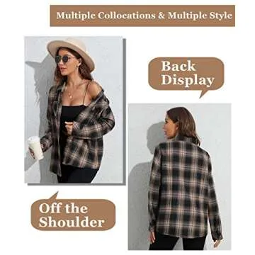 Show moreIntroducing the Deer Lady Plaid Flannel Shirts for Women—the ultimate style statement for every season! With its iconic buffalo plaid design, this oversized button-down blouse has become a seasonal staple, perfect for fall and winter. Whether you choose to wear it traditionally or opt for a trendy off-the-shoulder look, this versatile shirt delivers a myriad of styling options. The chic drop shoulders and cuffs allow for a relaxed fit, making it not just a shirt but a fashion essential that transcends various occasions.