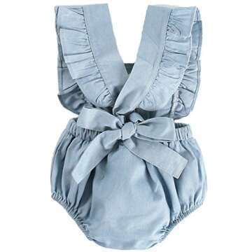 DeerBird Newborn Infant Baby Girl Ruffle Sleeve Bowknot Rompers Bodysuits Short Jumpsuits Size 6M Blue
