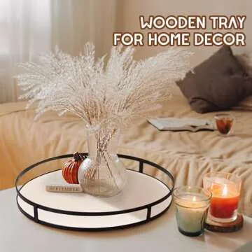 Defined Deco 12in Decorative Tray-Round Serving Tray with Metal Handle-Decorative Trays for Home Decor,Living Room Decor,Coffee Table Decor,Rustic Wooden Tray for Kitchen Table Decor,Dining Table.