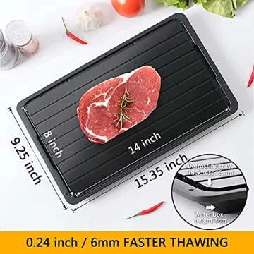 Defrosting Tray for Frozen Meat Rapid and Safer - Thawing Tray for Frozen Meat with Drip Tray - Natural Heating Defroster Tray Miracle Thaw Large Size Upgrades 6mm