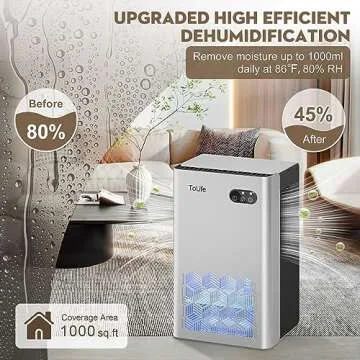 Dehumidifier, ToLife Dehumidifiers for Bedroom, 95 OZ Water Tank, (950 sq.ft) Quiet Small Dehumidifiers for Basement Home Bathroom with Auto Shut Off, 7 Colors LED Light, Silver